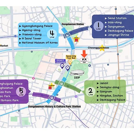Situated nearly 5 minutes on foot from the multistorey Dongdaemun Shopping Complex, K-Grand Hotel Ddp Seoul hostel offers guests to relax on a shared lounge. Offering Wi-Fi, the Seoul hostel also boasts a location right around the corner from Dongdaemun.